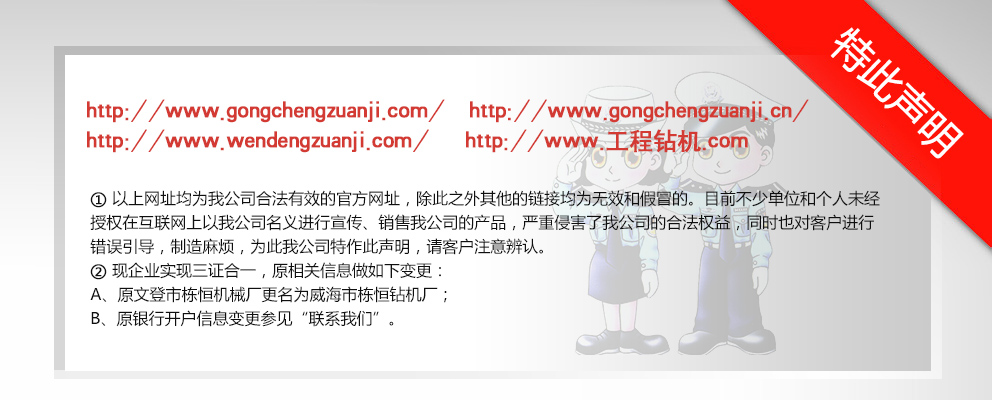 威海市棟恒鉆機廠隸屬于文登市工程鉆機廠,主要生產(chǎn)、銷售工程鉆機。它坐落于文登市西鋪頭工業(yè)園,這里科技發(fā)達,交通便利,制造業(yè)集中。 自1982年建廠以來,經(jīng)過多年的優(yōu)化改革和沉淀積累,擁有精密、大型加工設備近百臺的生產(chǎn)企業(yè)之一。現(xiàn)在研制成功的GJ-400、GJ-250S、GJ-250A、GJ-240S、GJ-240A、GJ-180S、GJ-180A型等鉆機。在其它產(chǎn)品上,企業(yè)建立了長期、中期、短期的發(fā)展規(guī)劃,一系列的高性能產(chǎn)品正在不斷推出中,企業(yè)應市場需求對系列產(chǎn)品進行了優(yōu)化組合,開發(fā)了與之對應配套的三腿、四腿單天車輪、雙天車輪鉆塔;泥漿泵—BW-160Q、BW- 200Q型球形閥泥漿泵大大提高了泵的使用性能和機械效率